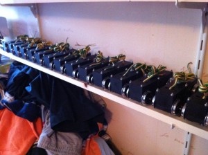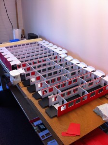 Ook zijn alle bakken al in elkaar gezet. De randen zijn afgewerkt en de gaten voor de dakmontage zijn gemaakt: