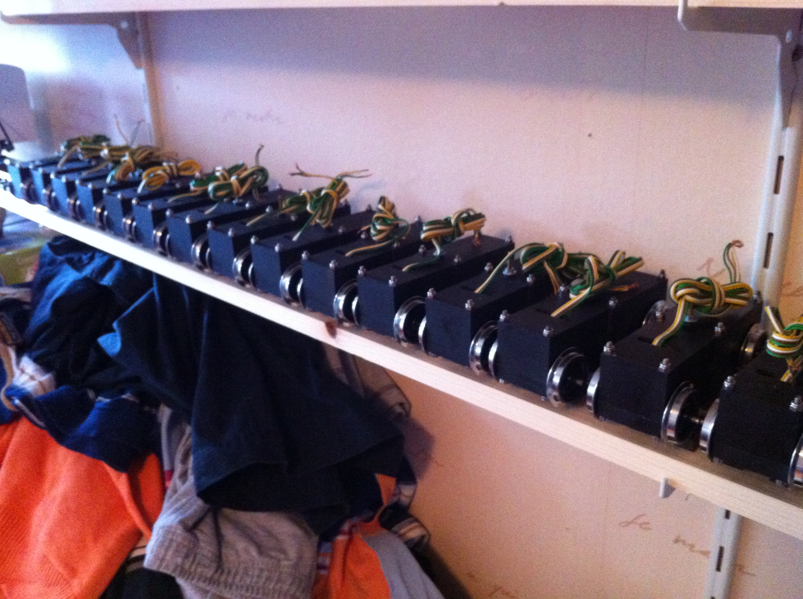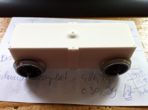 Het voordeel van zo’n eerste proef is dat je meteen kan zien wat er anders moet. Zo heb ik in het gewijzigde ontwerp wat ik naar aanleiding van deze proef de vlakken waarop de kogellagers zitten breder gemaakt en bestaat het geheel nog maar uit 2 delen. Het originele deksel hoeft niet los zodat het de structuur aaleen maar steviger maakt. Ook zijn de gaatjes voor de tapeinden waarmee de boel dichtgehouden wordt groter gemaakt en heb ik twee ribben ingevoegd zodat de motor niet in de lengterichting kan verschuiven. De hoogte is iets minder geworden en ik heb er twee pasnokjes op gemaakt om de boel goed te laten sluiten. Ook is het vlak waar de motor op ligt niet meer massief maar heeft dit ribben zodat de warmte makkelijker wordt afgevoerd. En als laatste verbetering een sleuf in de bovenzijde waar de draden doorheen kunnen.Allemaal prima verbeteringen! Vandaag ga ik het hele ontwerp nog een keer nalopen en als ik definitief weet dat het goed is worden er een aantal draaistellen besteld. De inschrijving op de eerste serie is gesloten dus de productie gaat van start!