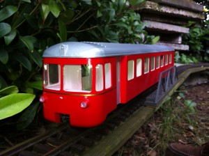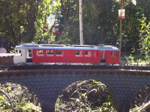 En zo ziet de motorwagen er uit op een Zwitsers viaduct: